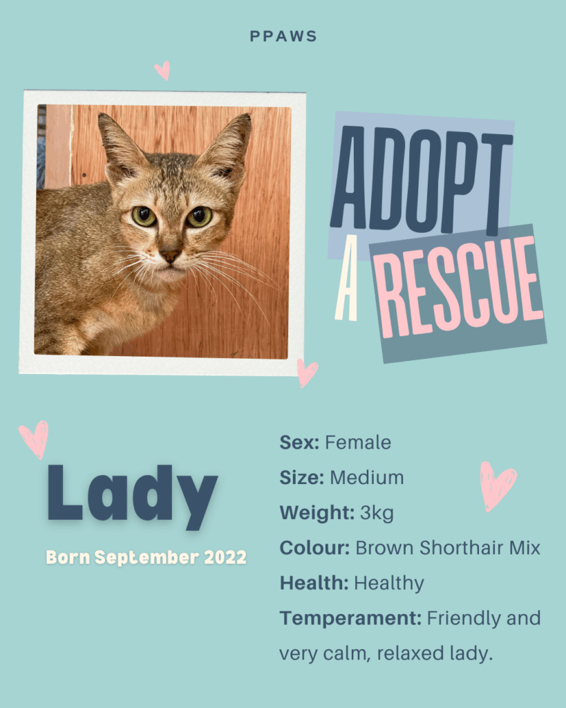 PPAWS has many cats and dogs in need of good homes. They are mostly abandoned and stray animals, and many have come to us for veterinary care after being rescued with an injury or illness. All our cats and dogs available for adoption and foster are healthy, desexed, vaccinated, dewormed, treated for fleas, and assessed by our veterinarian immediately before going to their new forever home.